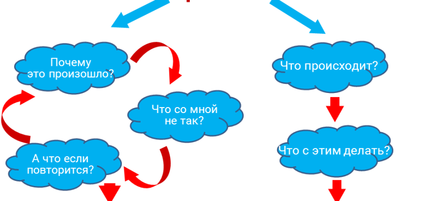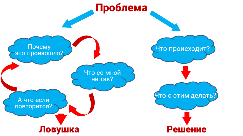 | Переоценка | Задавайте себе вопросы | "Что я могу сделать прямо сейчас‚ чтобы исправить ситуацию?" |